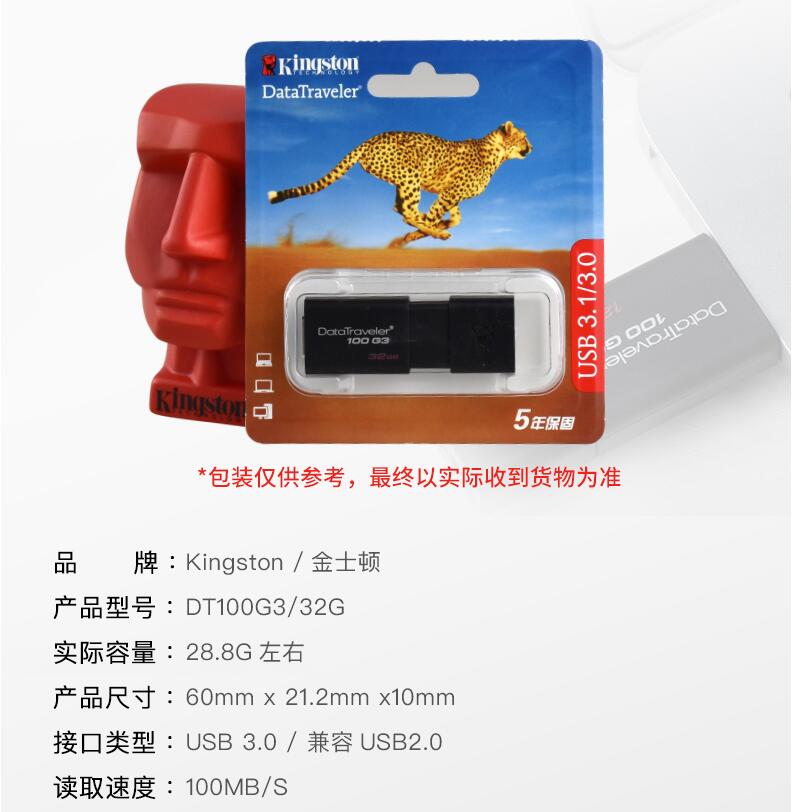 金士頓 32GB U盤(pán) DT100G3 推拉高速優(yōu)盤(pán)USB3.0 車(chē)載u盤(pán)