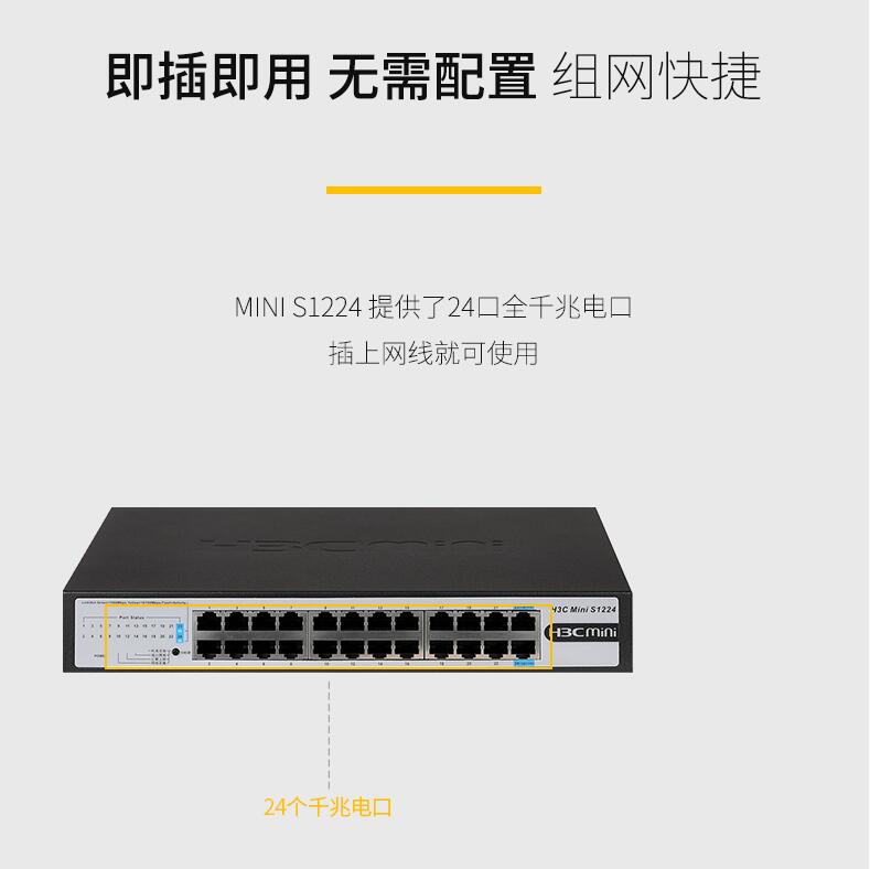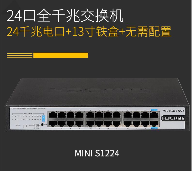 H3C華三Mini S1224 24口全千兆交換機(jī)企業(yè)級(jí)無管理非網(wǎng)管網(wǎng)絡(luò)交換器監(jiān)控防雷分線器替代S1324G