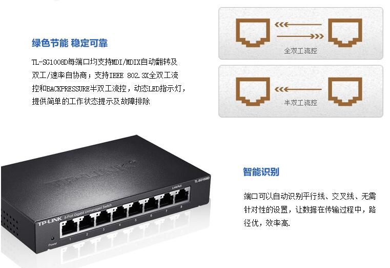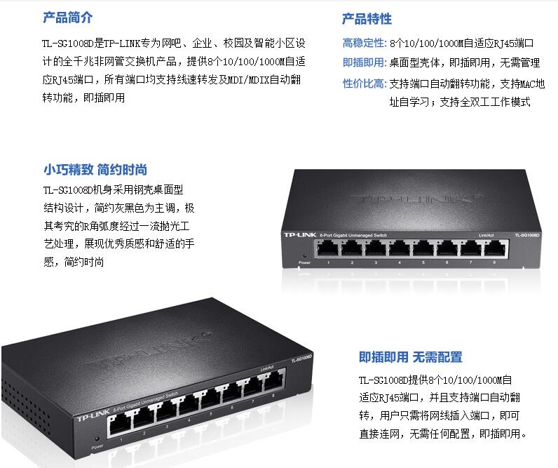 TP-LINK TL-SG1008D 8口千兆交換機 鋼殼高速1000M網(wǎng)絡tplink安防監(jiān)控交換機八口
