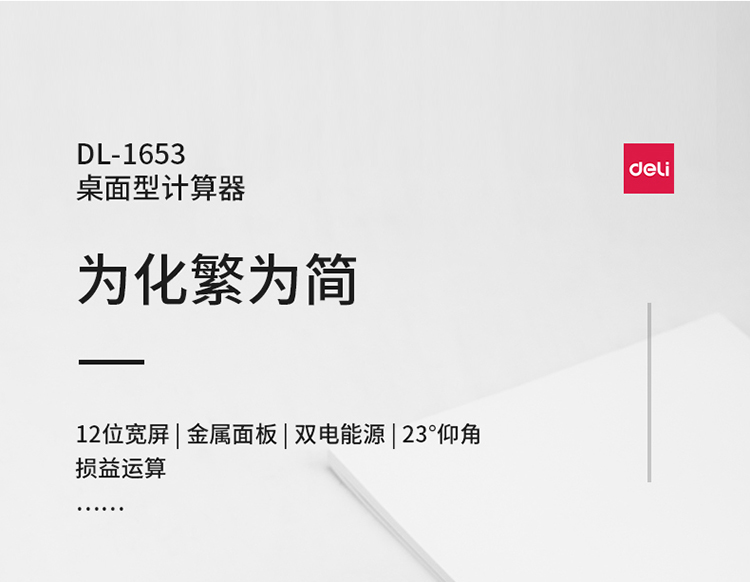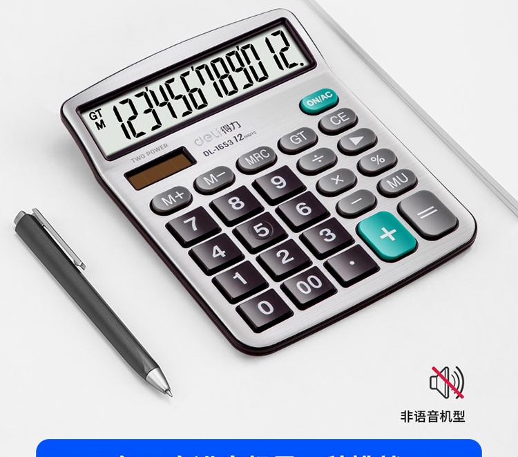 得力(deli)雙電源寬屏辦公桌面計算器 財務(wù)計算機 辦公用品 銀白色1653